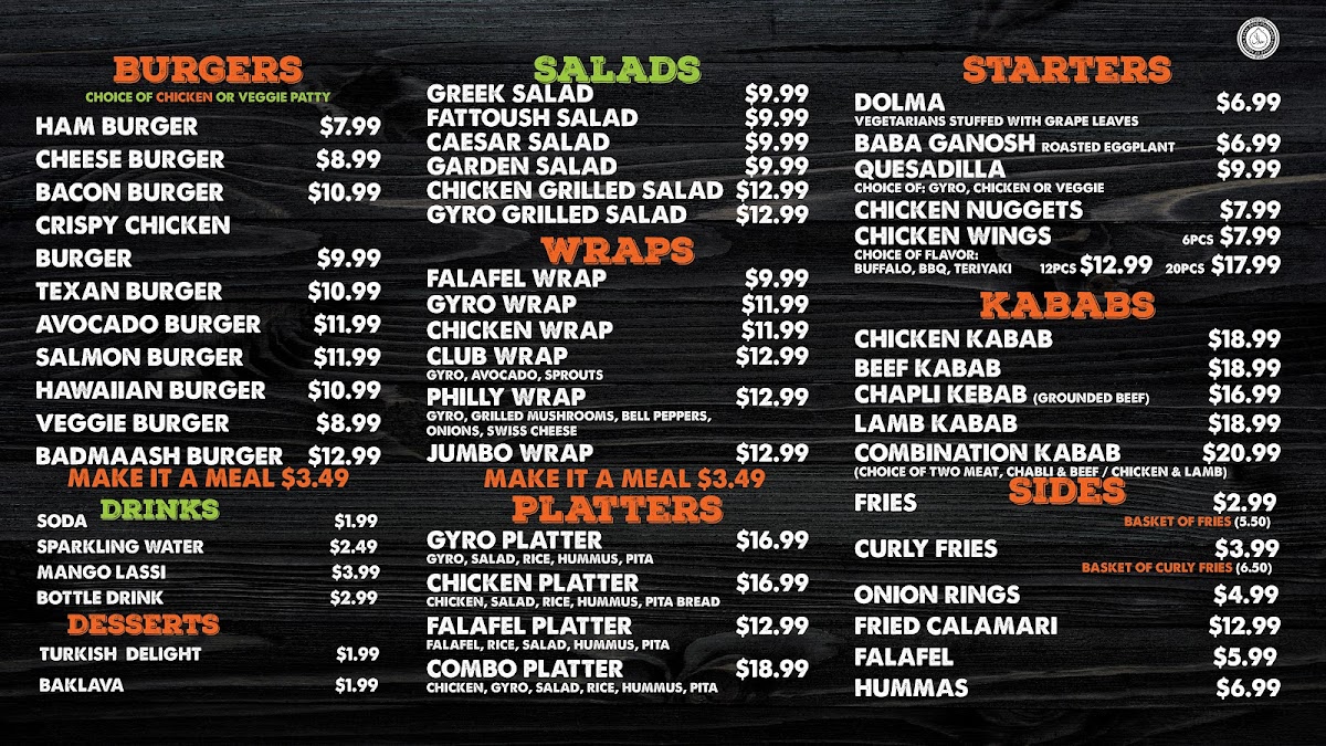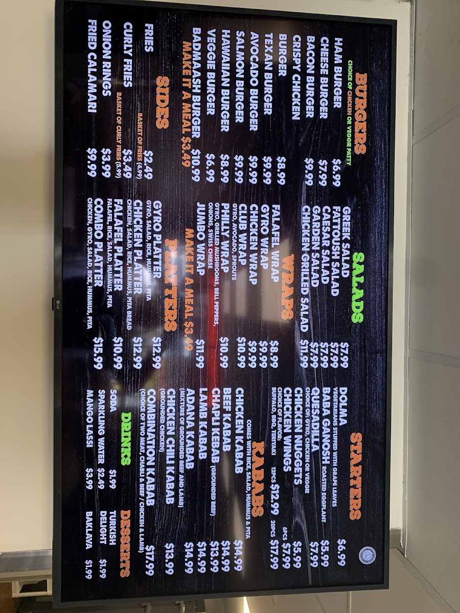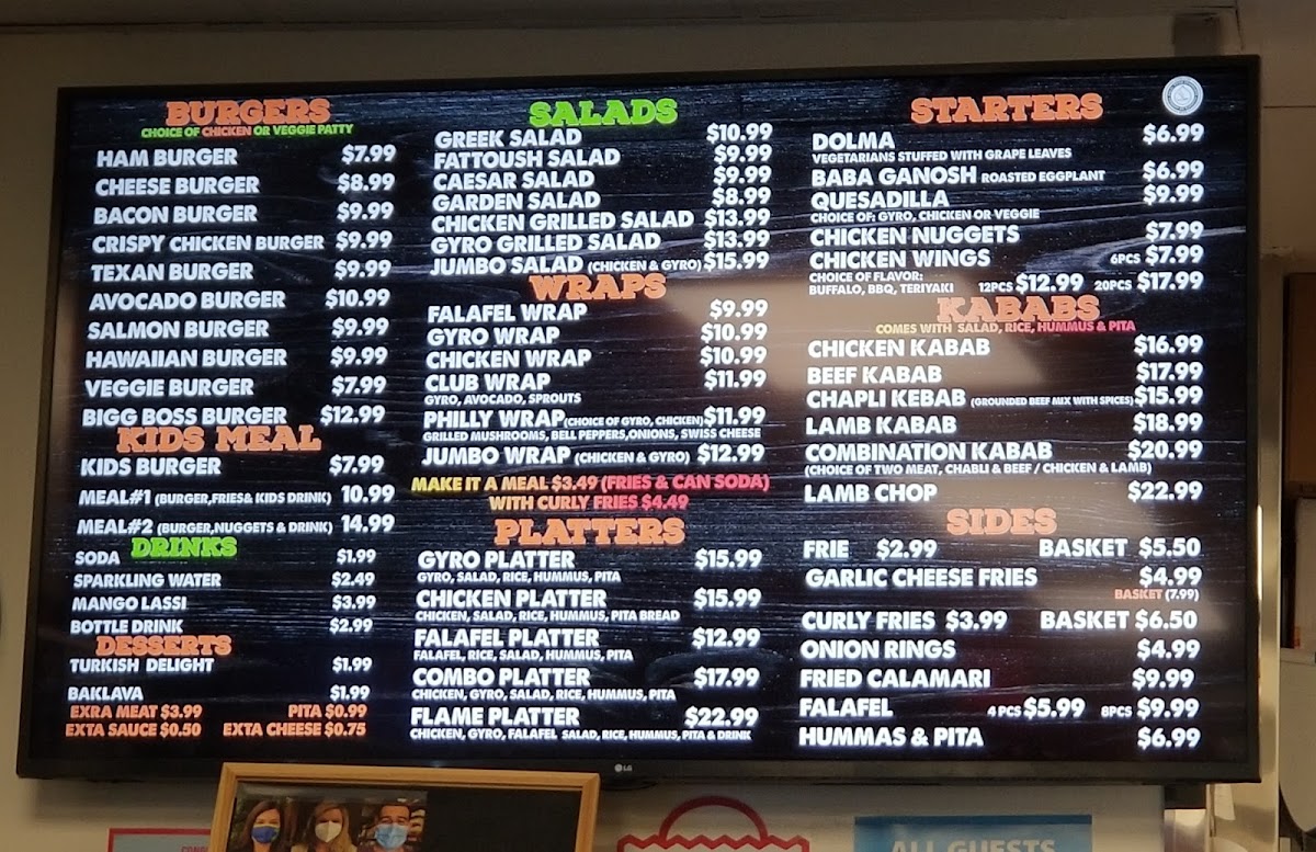 The menu features a balanced mix of hearty platters, flavorful gyros, and crisp sides. Popular options like the falafel platter or shawarma plate pair well with classic accompaniments such as hummus, rice, and freshly baked pita. For those who enjoy a bit of spice and texture, items like curly fries and garlic cheese fries offer a casual, comforting bite alongside the more aromatic and savory main dishes.